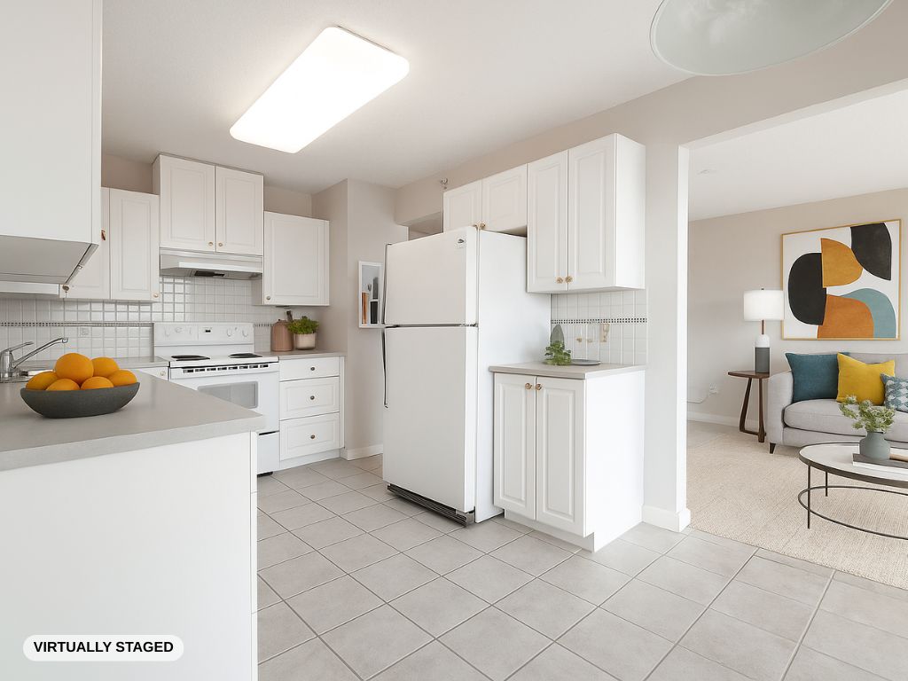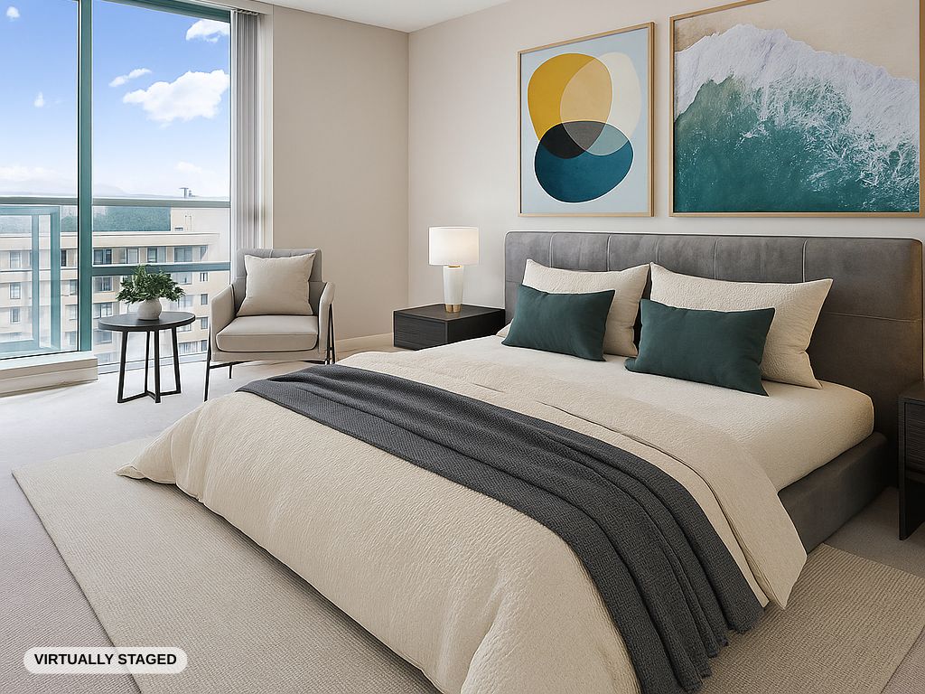 Welcome to our incredible view suite in the heart of uptown New West. Off the tile foyer, a large home office or flex space with an oversized window looks out to the living room with a gas fireplace. An incredible mountain view opens up from the living room, dining room and covered balcony with panoramic vistas spanning from the North Shore mountains, down the river to the Patullo Bridge, and on to Mount Baker. Back from the patio, the spacious eat-in kitchen, enjoys the same view from sliding glass doors. A two piece guest bathroom sits next to the laundry room in front of a large primary bedroom with mirrored twin closets and full ensuite with a soaker tub. Floor to ceiling windows pour in natural light over the treetops below. Downstairs a fitness facility sits next to the 5th floor lobby, which also leads to a large amenity room available for private bookings. Uptown amenities surround this building with direct access at the lower lobby level to Royal City Center. 1 cat or dog (max 25” shoulder height) allowed.