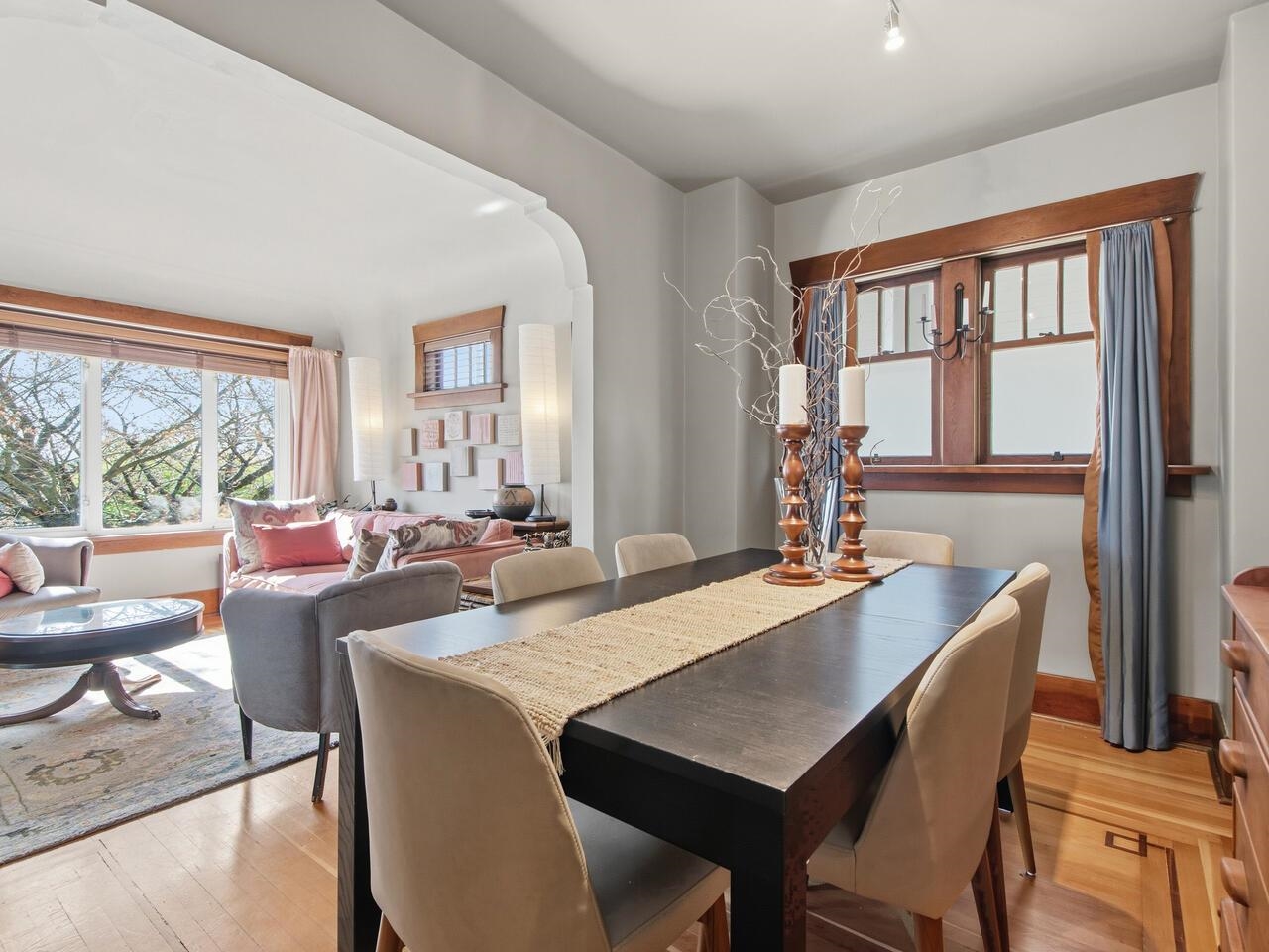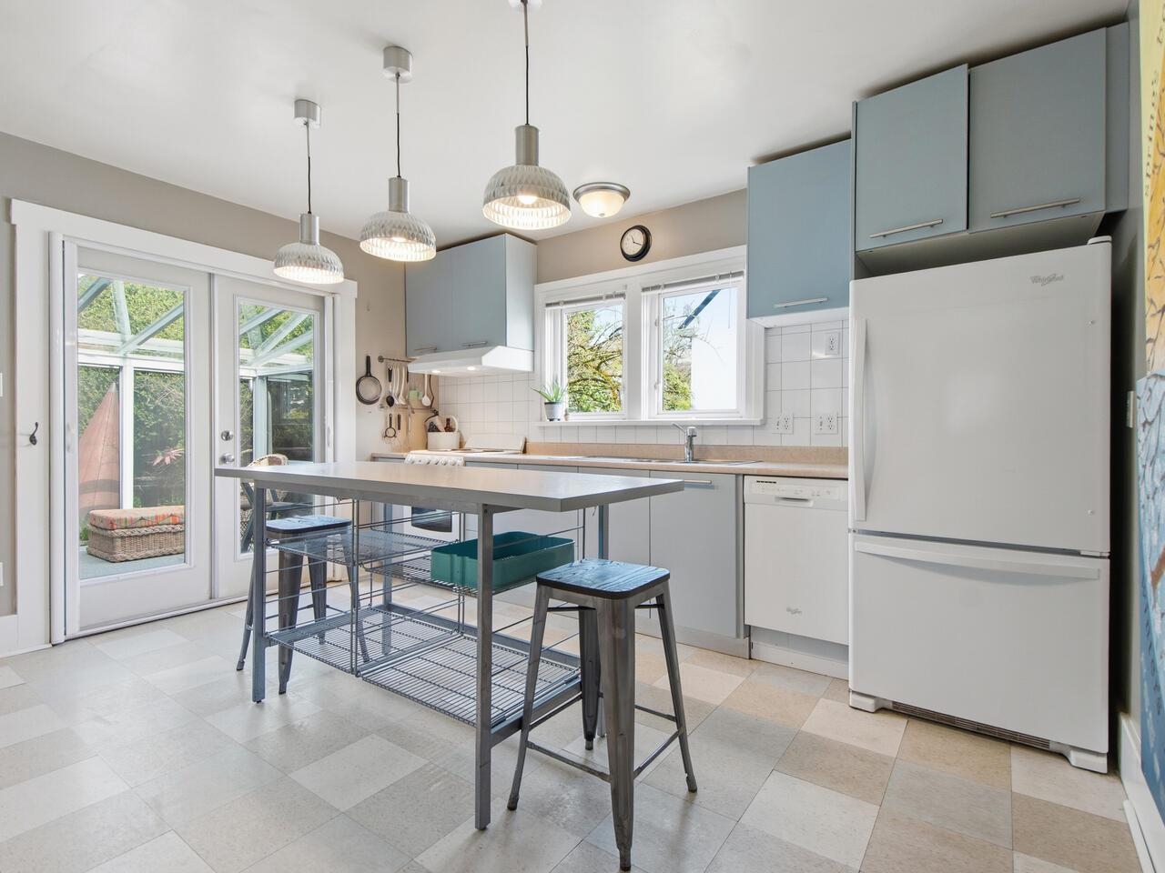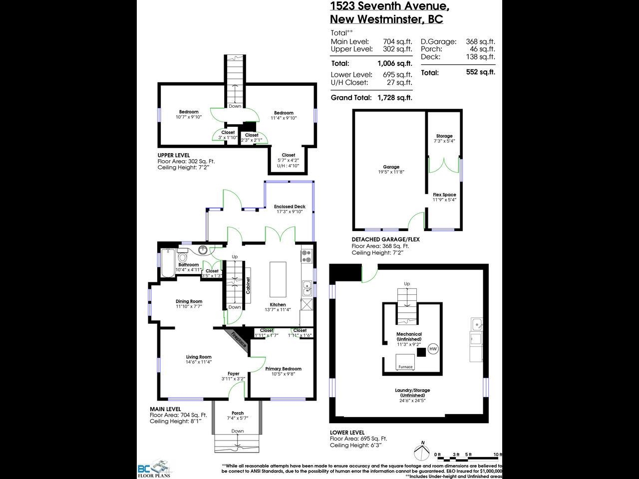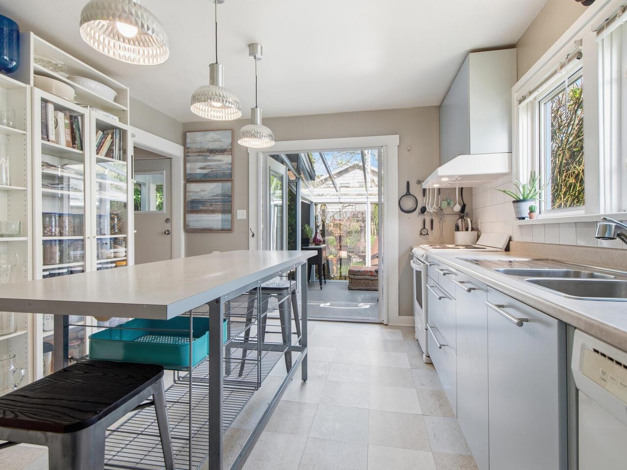This charming West End home welcomes you into the living room with fir floors next to a warm dining room space leading to the bright kitchen with floor-to-ceiling, as built in glass cabinets. French doors swing out to an enclosed patio with a glass roof and security screens. A full updated bathroom sits just beyond the back door. The main level bedroom next to the living room rounds out this floor. 2 more bedrooms share the top floor. An unfinished basement with a ceiling height of 7’2 hosts the laundry area, storage, craft space, and separate entrance to the back. Stepping out to the lush, terraced backyard, a stone walkway leads to the flex space developed in the garage off the lane. 3 partitioned areas allow for multiple purposes within. Perched on the high side of the street, Southeast views over the roofs across the street look towards Mt. Baker as morning sun pours into the front rooms. A 19 min walk down the crosstown greenway passed Grimston Park leads to 22nd st. Skytrain. Just minutes from Burnaby, New West Pier Park, Royal City Centre, and Market Crossing.