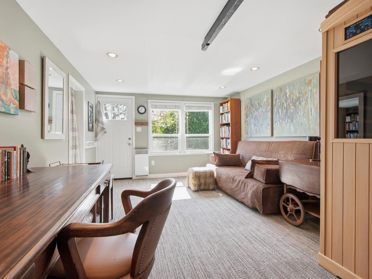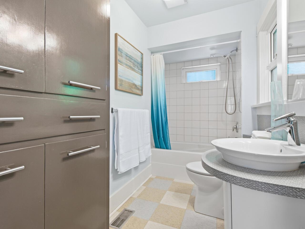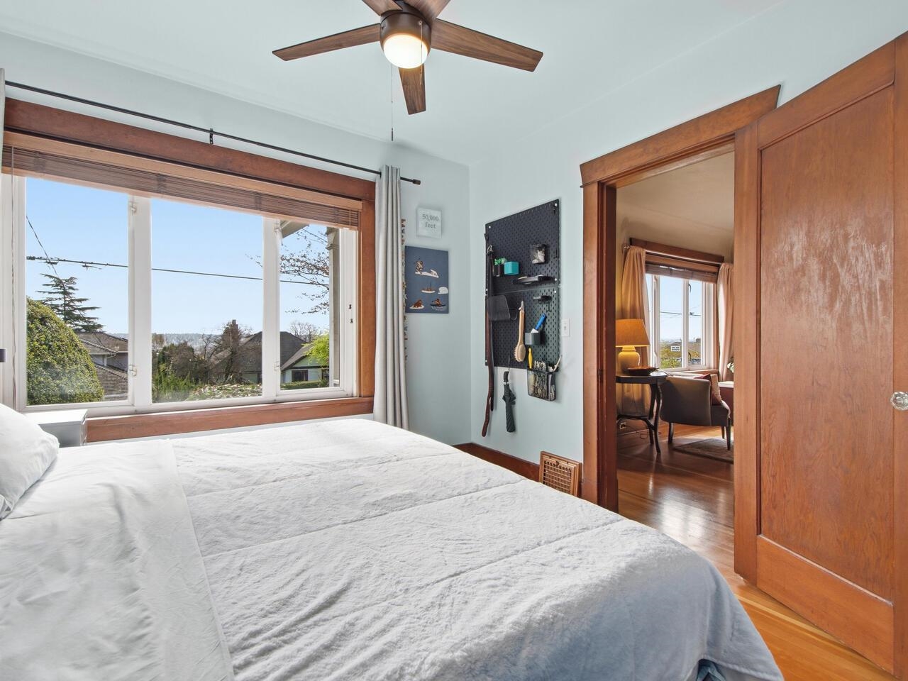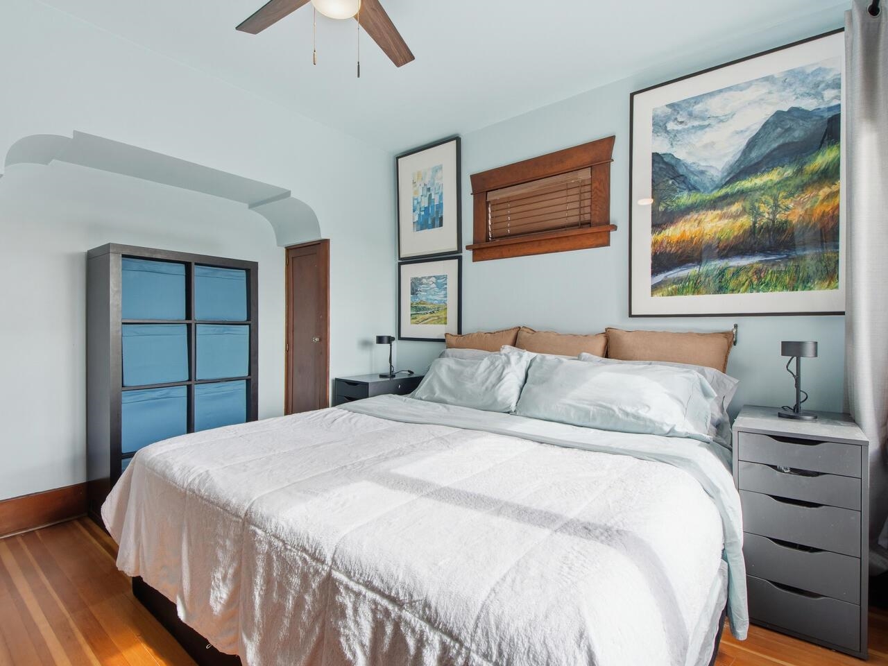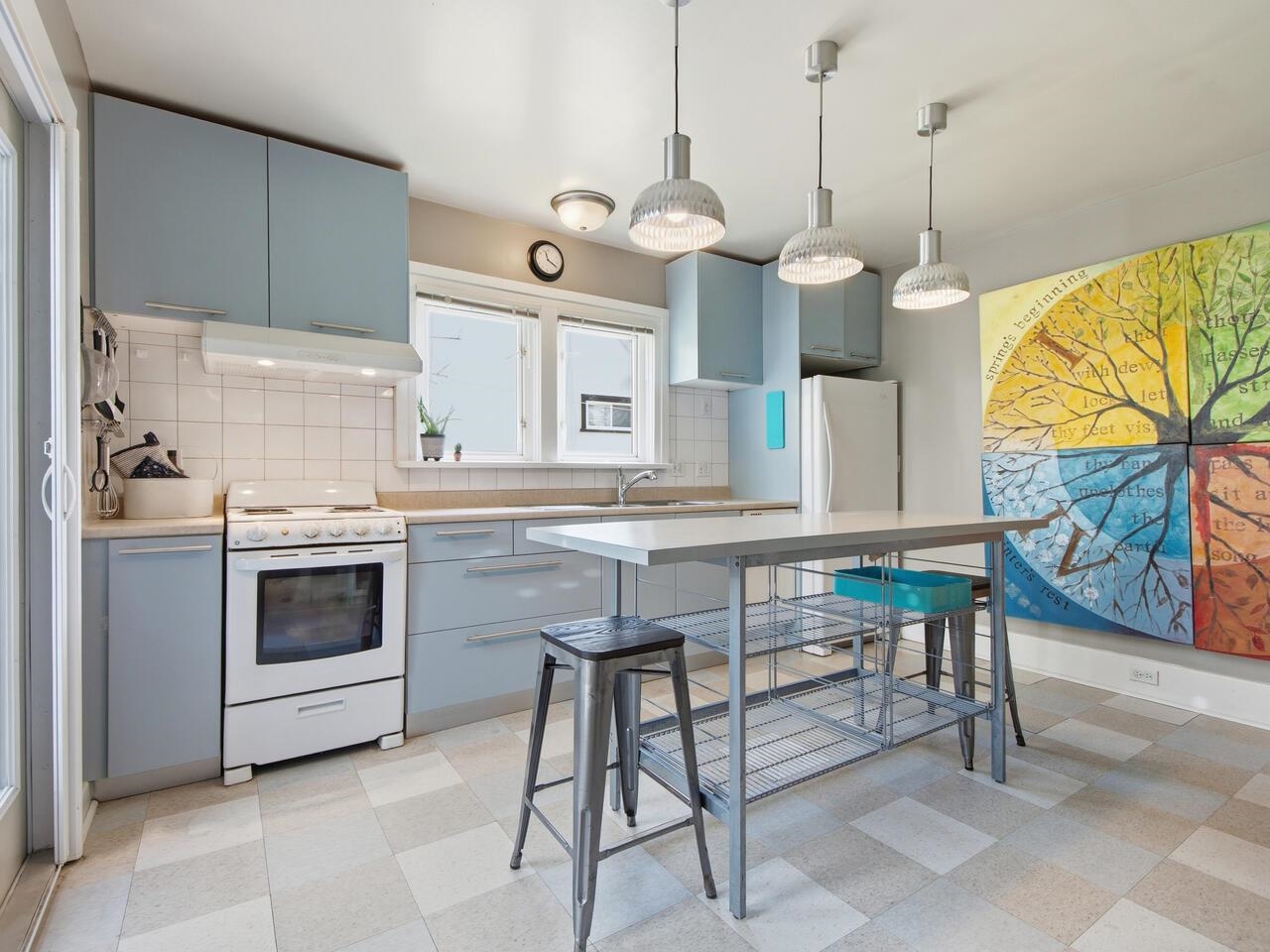 This charming West End home welcomes you into the living room with fir floors next to a warm dining room space leading to the bright kitchen with floor-to-ceiling, as built in glass cabinets. French doors swing out to an enclosed patio with a glass roof and security screens. A full updated bathroom sits just beyond the back door. The main level bedroom next to the living room rounds out this floor. 2 more bedrooms share the top floor. An unfinished basement with a ceiling height of 7’2 hosts the laundry area, storage, craft space, and separate entrance to the back. Stepping out to the lush, terraced backyard, a stone walkway leads to the flex space developed in the garage off the lane. 3 partitioned areas allow for multiple purposes within. Perched on the high side of the street, Southeast views over the roofs across the street look towards Mt. Baker as morning sun pours into the front rooms. A 19 min walk down the crosstown greenway passed Grimston Park leads to 22nd st. Skytrain. Just minutes from Burnaby, New West Pier Park, Royal City Centre, and Market Crossing.