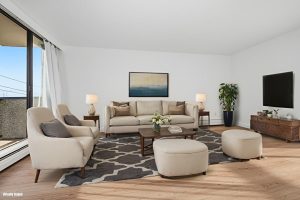 Welcome to Mayfair Terrace, a 55+ retirement community in the heart of Central Port Coquitlam. This suite opens to a spacious living and dining room overlooking a lush, landscaped pond and courtyard bordering the balcony. Walking past the gas fireplace to the primary bedroom you’ll find the same view, a full ensuite with a walk-in shower plus double closets. The kitchen has a large open passage in front of the sink to enjoy the bright windows. Beside the main bathroom & insuite laundry, a second bedroom has plenty of room for guests or a home office. Within this facility, residents have access to meals in the community dining room, recreation including a games room & pool table, a hair salon, exercise room, private dining room, theatre and outdoor greenhouse in the courtyard. The required base monthly service plan of $610 for the first resident, and $365 for the second covers 10 meals, weekly housekeeping, a 24hr emergency response system, social and recreational activities, and mini bus transportation for planned excursions. Additional meals are available for an added cost. Walkscore 81, 1 block from the new Poco Community Centre with a leisure pool, fitness centre, library and games room. Lap pets approved by strata council allowed. Rentals allowed (sorry, no short term/vacation rentals).
