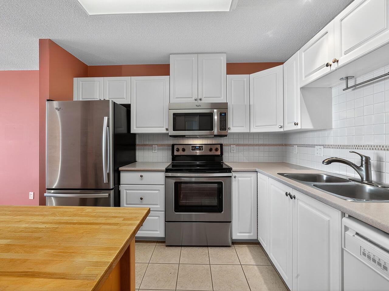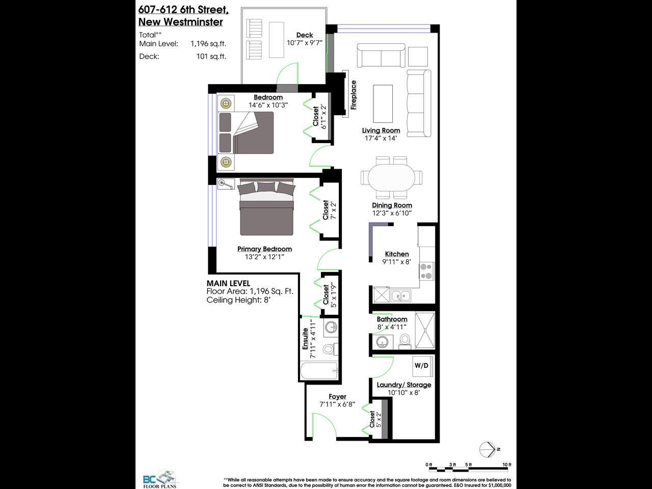 Bright & spacious 1196 sq ft 2 Bed & 2 Bath SW facing suite with large, covered private deck. Large room sizes, gas FP, efficient layout, in-suite laundry/storage room & updated flooring throughout. Extremely well-maintained building with recent updates including: domestic water repiping (2019), updated common areas (2020), balcony resurfacing (2023) & recent elevator upgrades. Located in the heart of UPTOWN & directly attached to the Royal City Center mall, close walking distance to all levels of schools, transit, shopping, restaurants & amenities. 1 Parking & 1 storage locker included. Fully equipped gym, party room, ample visitor parking & 1 Pet OK!