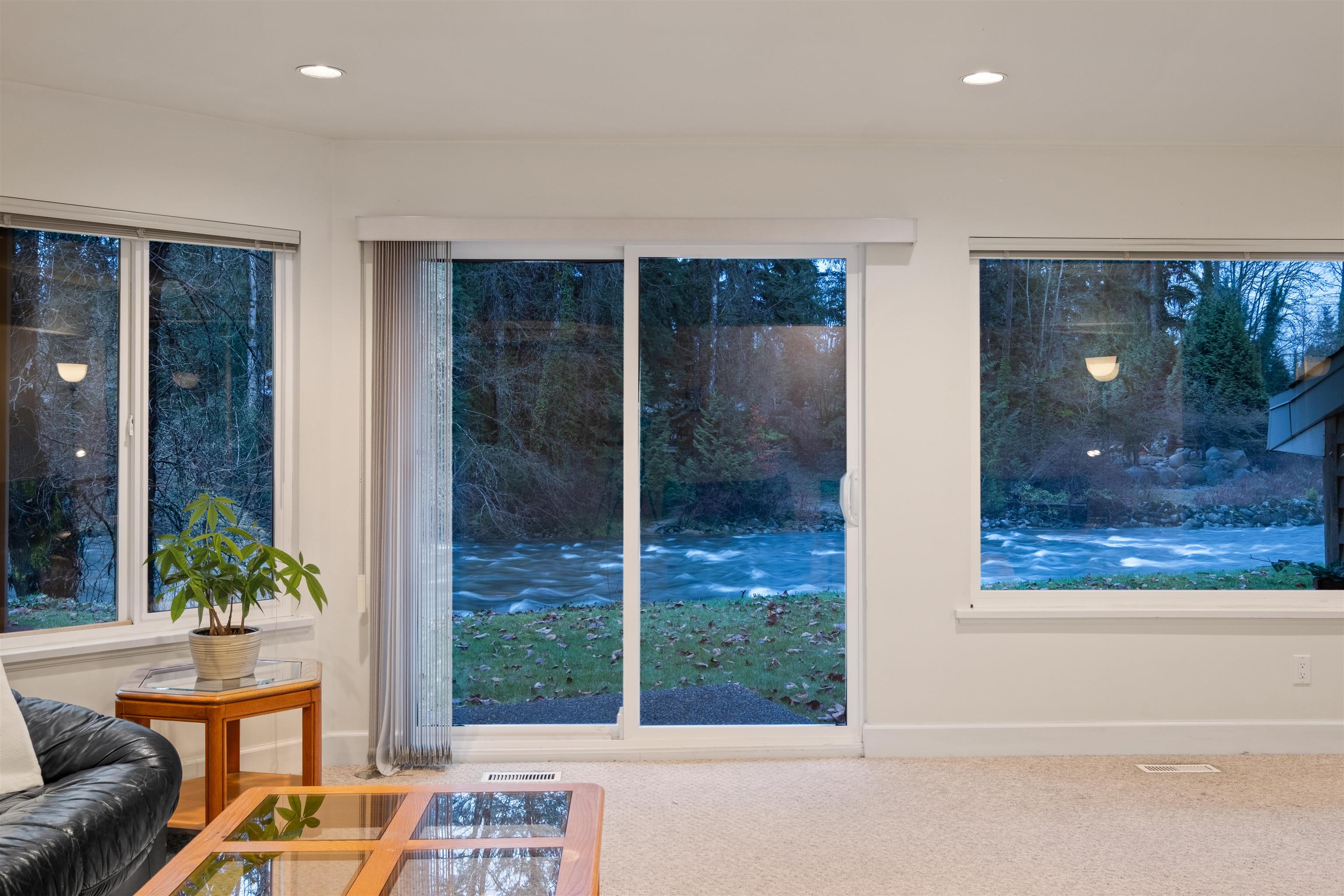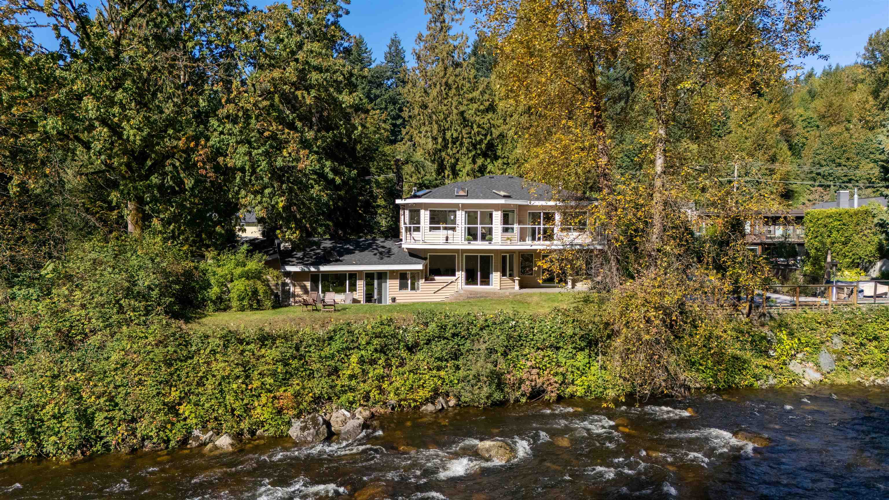 One-of-a-kind riverfront estate on a nearly 23,000 sq ft lot with rare frontage on the Seymour River. This exceptional property offers unmatched privacy, space, and natural beauty in a truly park-like setting. The two-level home is designed to capture the views with sun-drenched living areas, expansive windows, and multiple decks and patios for seamless indoor-outdoor living. A long private driveway winds through manicured grounds to this secluded riverside retreat—perfect for families, entertaining, and everyday escape. Bonus: a self-contained 2-bedroom above-ground suite with its own garage, ideal for in-laws or rental income. Potential for subdivision or a future coach house. Rarely do properties of this scale and setting come to market, this property is a true North Shore treasure.